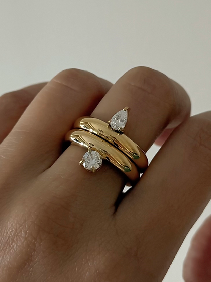 Minimal band rings with CZ solitaire stone; choose bewteen round and pear cut stone.