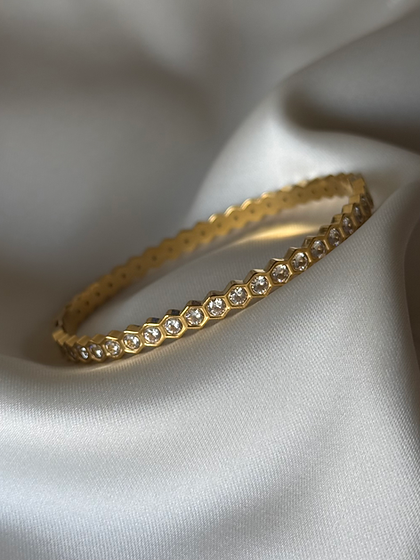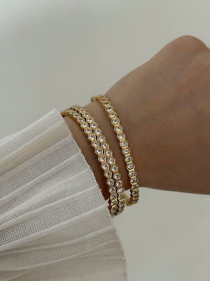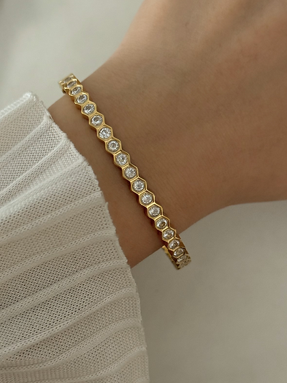 Honeycomb-style bracelet with CZ stones.