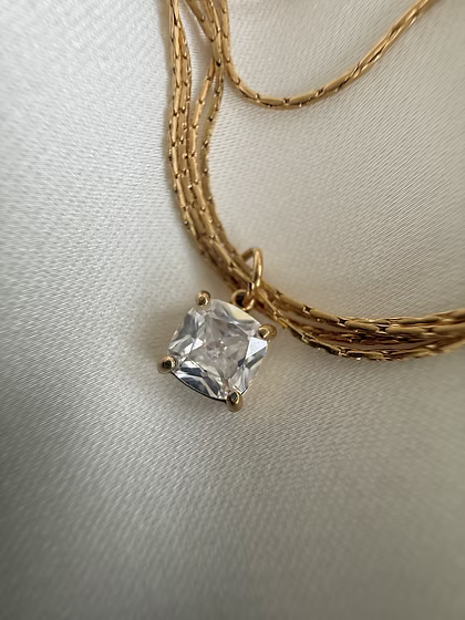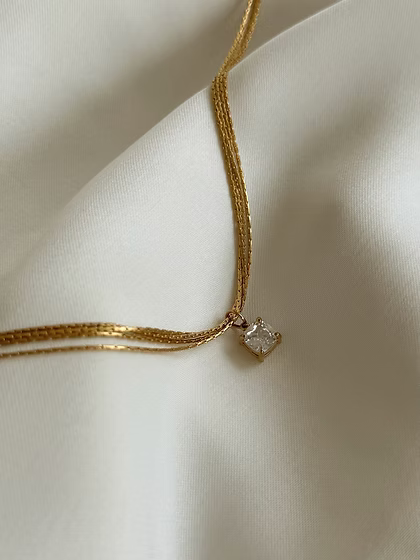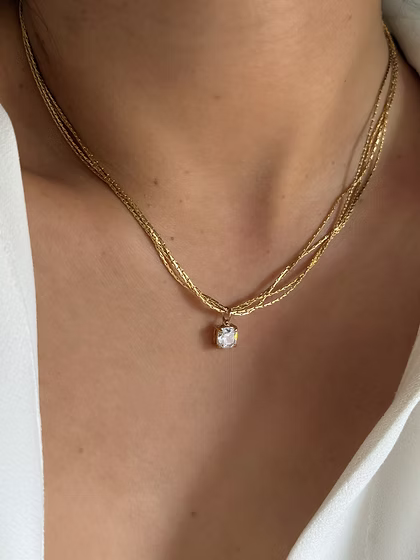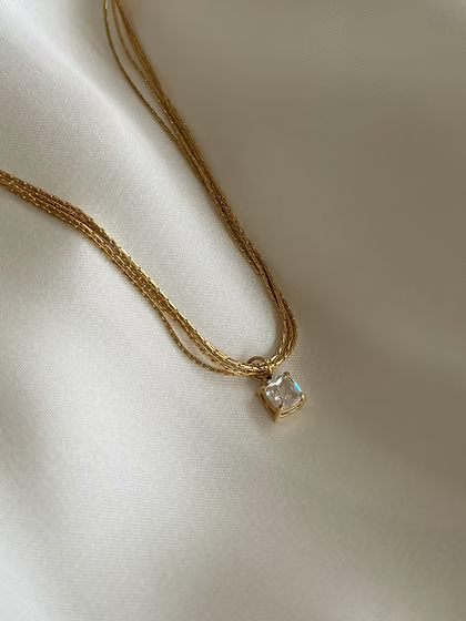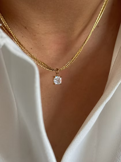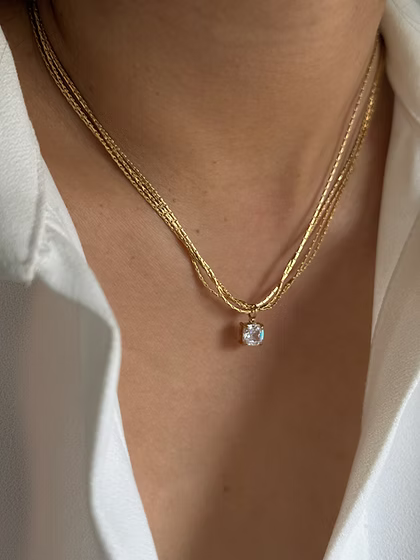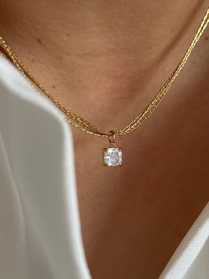 Four-layer rectangular chain necklace with a CZ stone pendant.