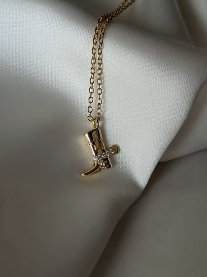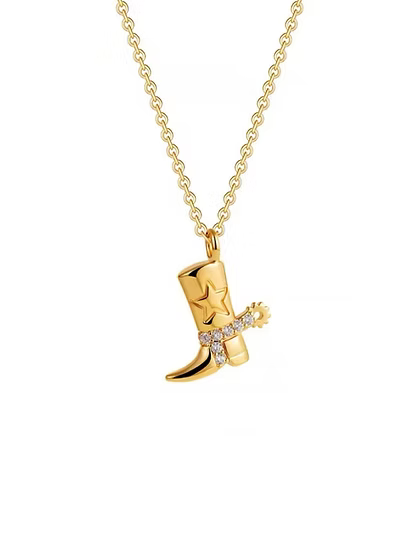 Cute cowboy boot pendant necklaces with CZ stones! Available in 2 designs.
