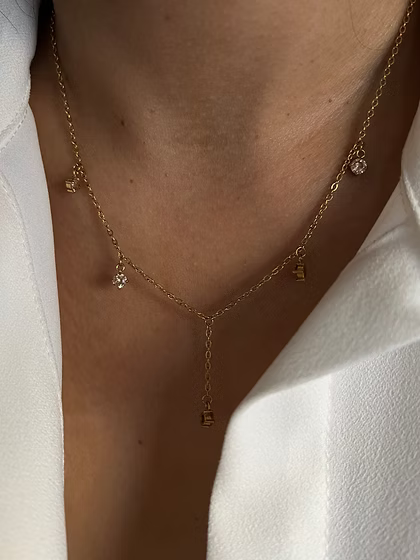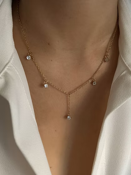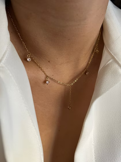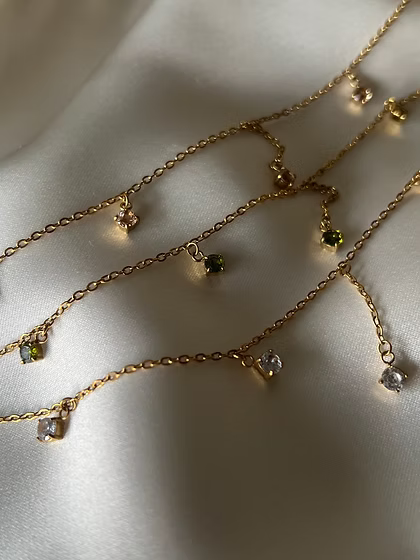 Dainty and minimal necklace adorned with CZ stones. Available in 3 colours.