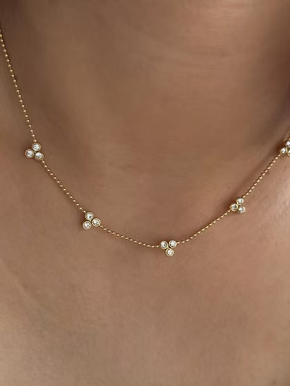 Dainty and minimal 3-stone flower necklace with CZ stones!