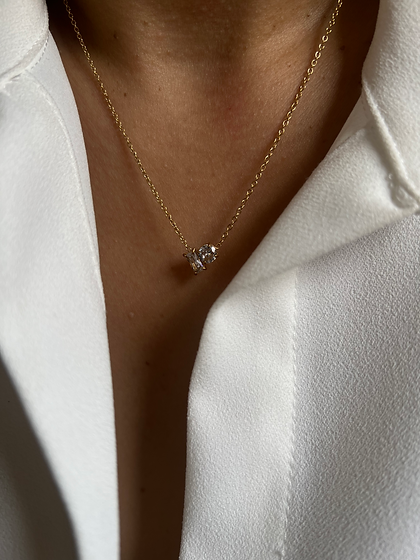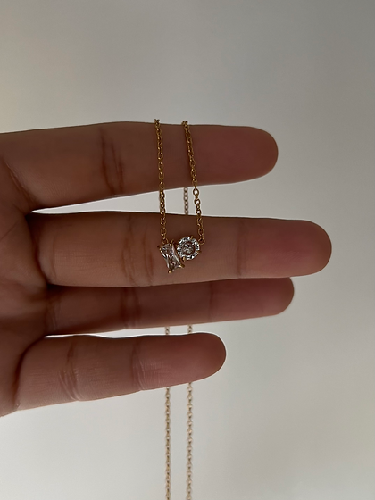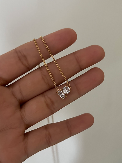 Two-stone pendant necklace featuring a baguette and a round CZ stone.