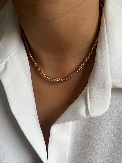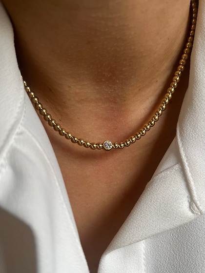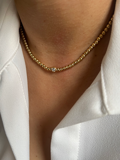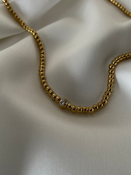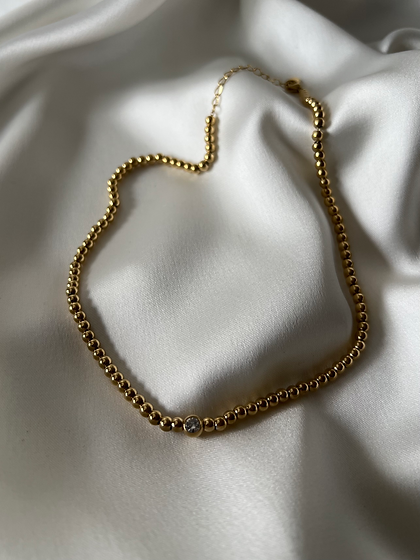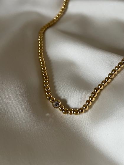 A classic gold beaded necklace with CZ stone pendant. A must-have!