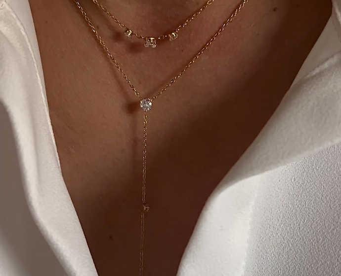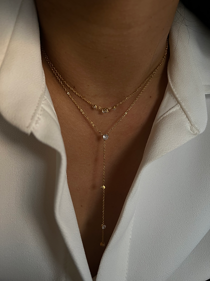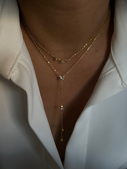Dainty double-layered necklace with CZ stones.