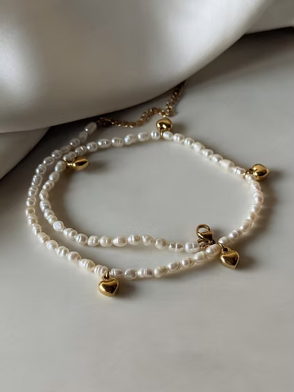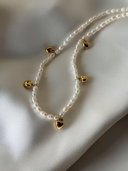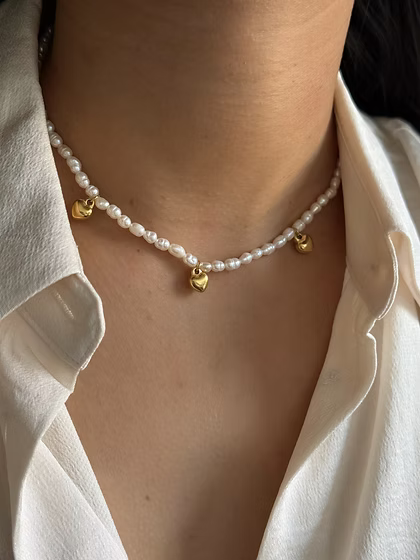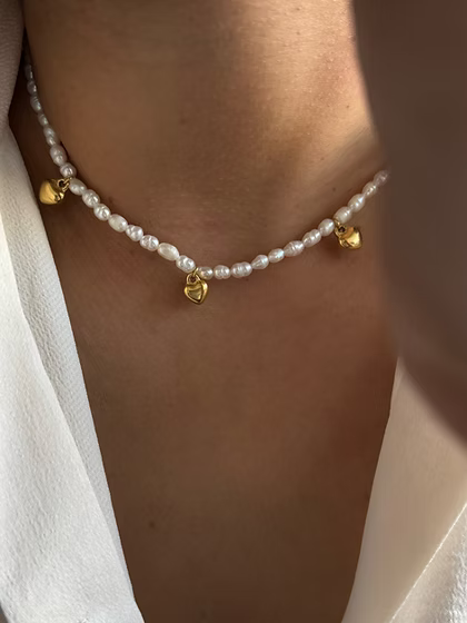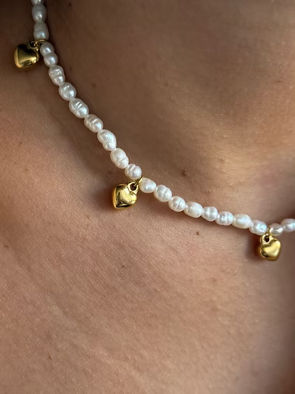 Freshwater pearl necklace with heart charms!