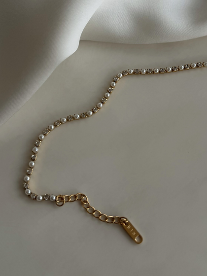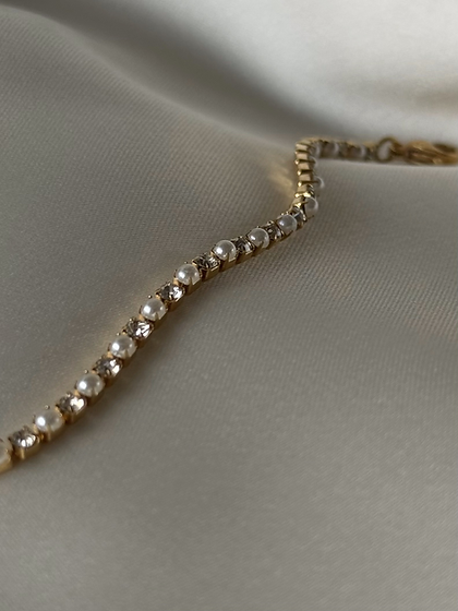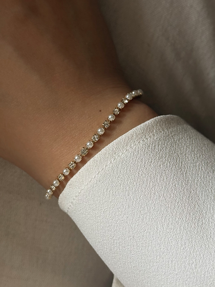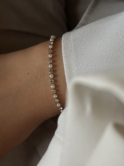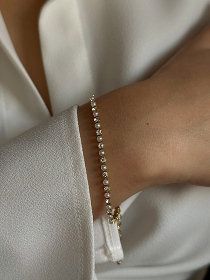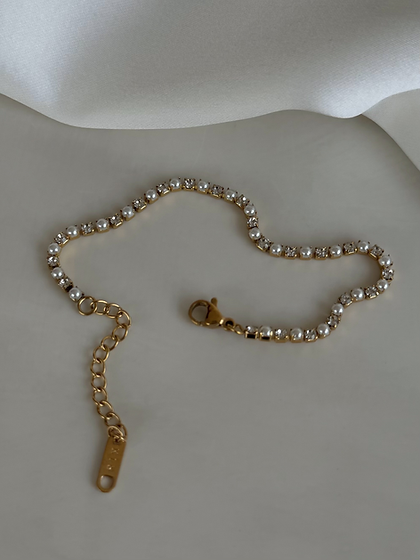 Dainty and minimal tennis bracelet adorned with mini faux pearls and CZ stones!
