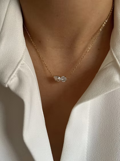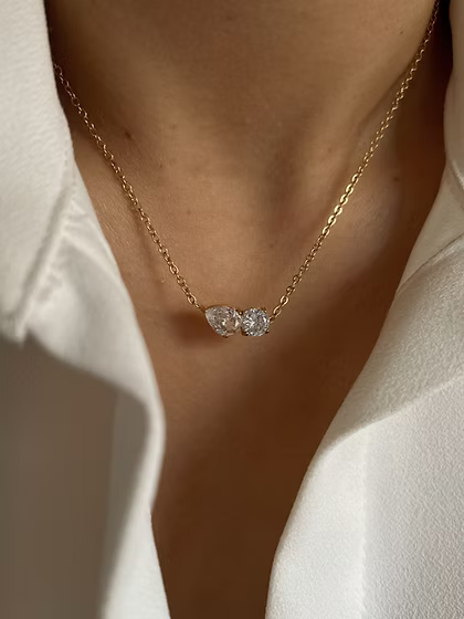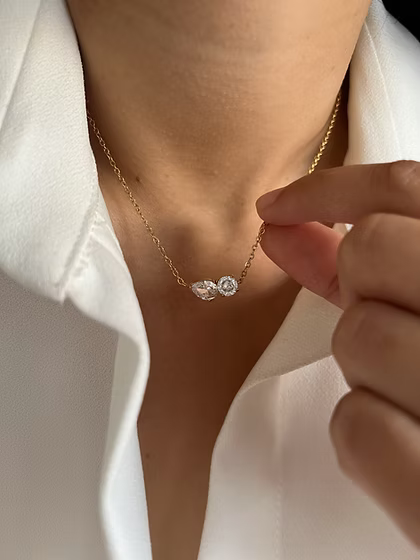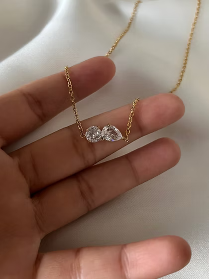 Dainty pendant necklace adorned with white pear and round CZ stones.