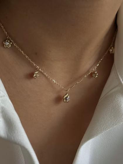Dainty and minimal flower pendant necklace with CZ stones!