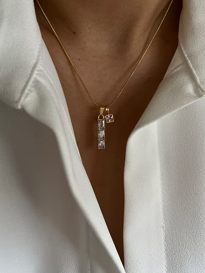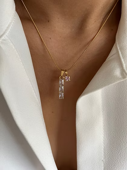 A minimal double pendant snake chain necklace, perfect for daily wear.