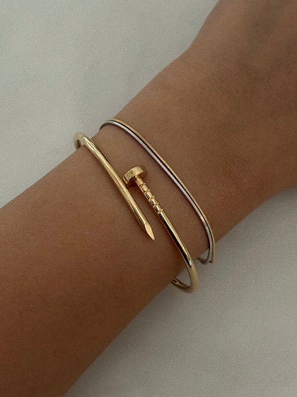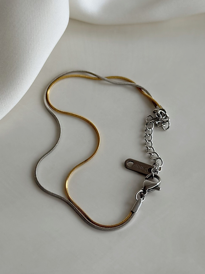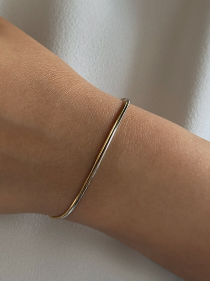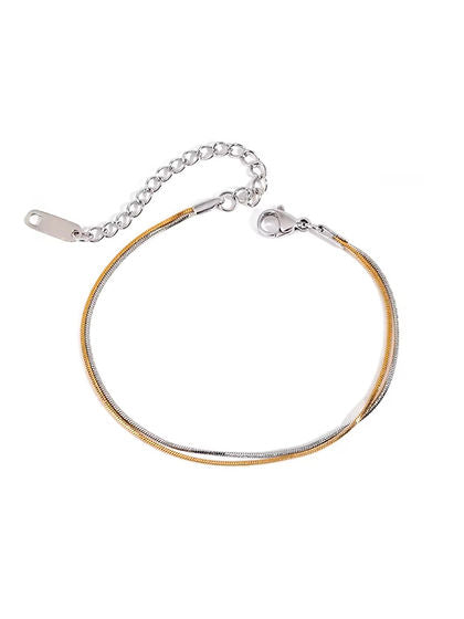 Minimal and dainty two-tone double-layer snake chain bracelet.